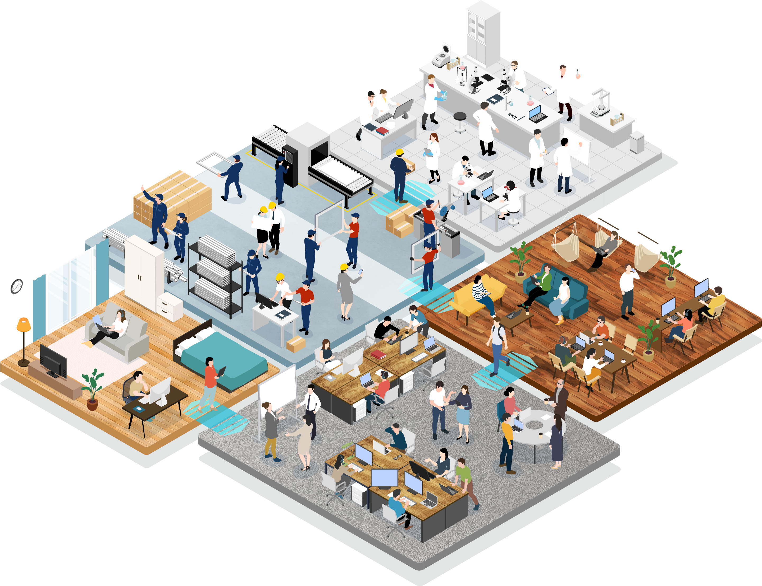 scene 02 仲間の存在を感じたいときに働いている場所が違っても、zawaroomに集うことで一体感が得られます。 会話をしなくても仲間同士の様子が見れたり、ステータスや予定を確認したりできるので、仲間の存在を感じながら働けます。