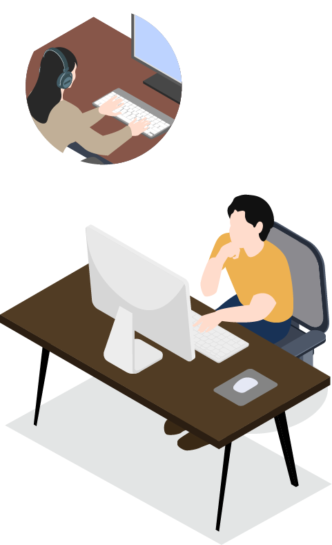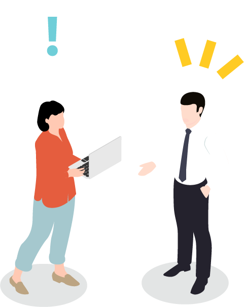 scene 03 画面を見ながら相談したい・共同作業したいときに簡単に自分のPC画面を複数共有したり、お互いの画面を同時に見せあうことができるので、効率的に相談や作業ができます。 また、会議室を使えば当事者同士だけで画面や会話が共有できるため、相談や作業に集中できます。