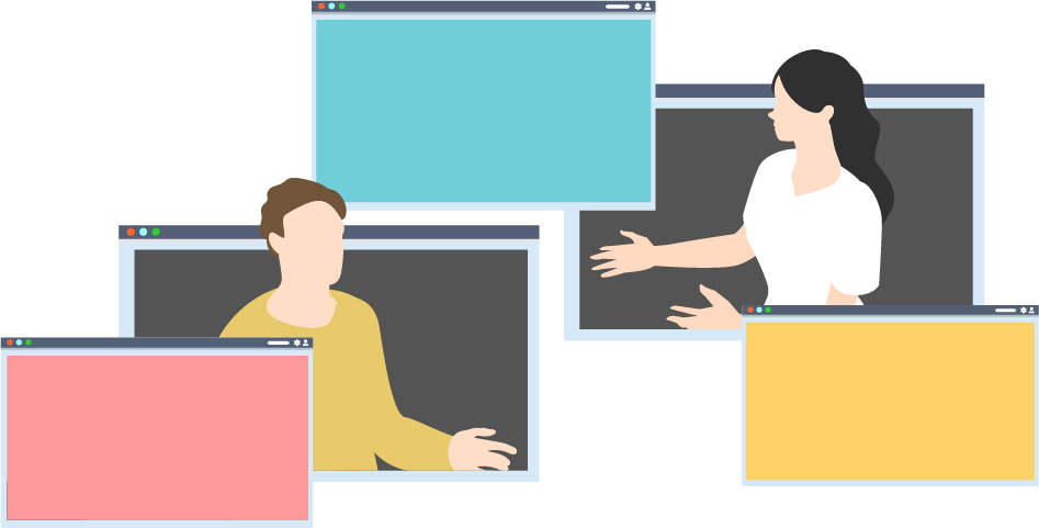 複数画面共有1人が複数の画面を共有することも、複数人が同時に各自の画面を共有することもできます。