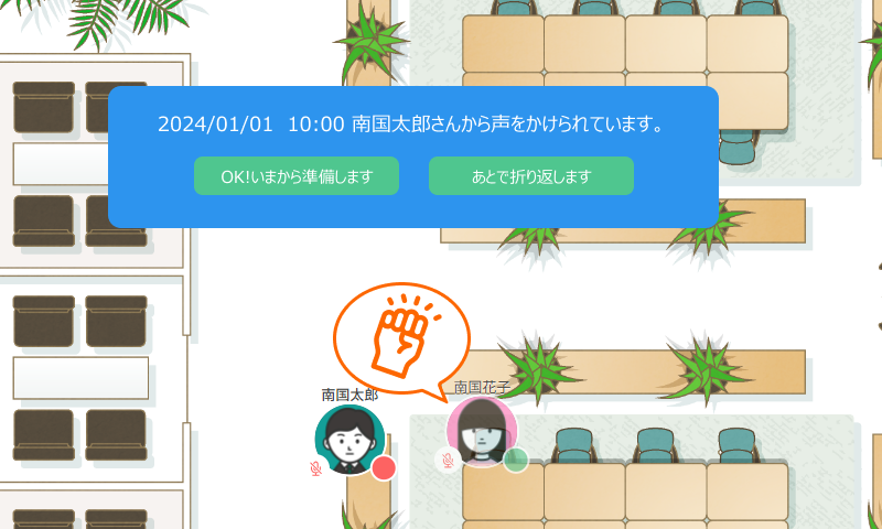 話しかけるまえに相手に声かけすることができます。声かけすると相手にノック音が届きますので、相手の状況を確認してから会話をはじめることができます。