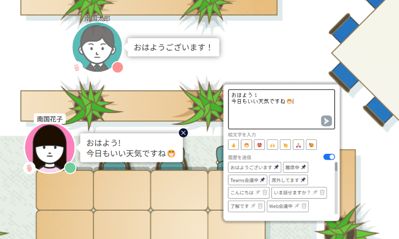 自分のアイコン横に好きなメッセージを表示することができます。音声での会話ができない場合などはテキストでコミュニケーションが取れます。