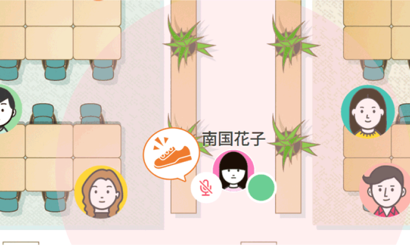 アイコン同士が近くにいる人たちと会話ができます。アイコンが遠く離れると声が聞こえなくなります。また設定により声の届く範囲は変更できます。