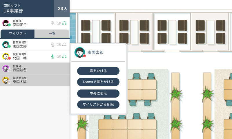 よく会話をする人などをマイリストとしてお気に入り登録できます。声かけなどが簡単に行えるようになります。