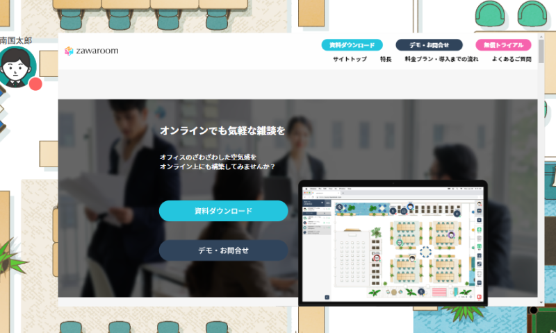 ブラウザウィンドウを開いていなくても、子画面にzawaroomの様子を映せるので、自分の周辺の状況をいつでも確認できます!