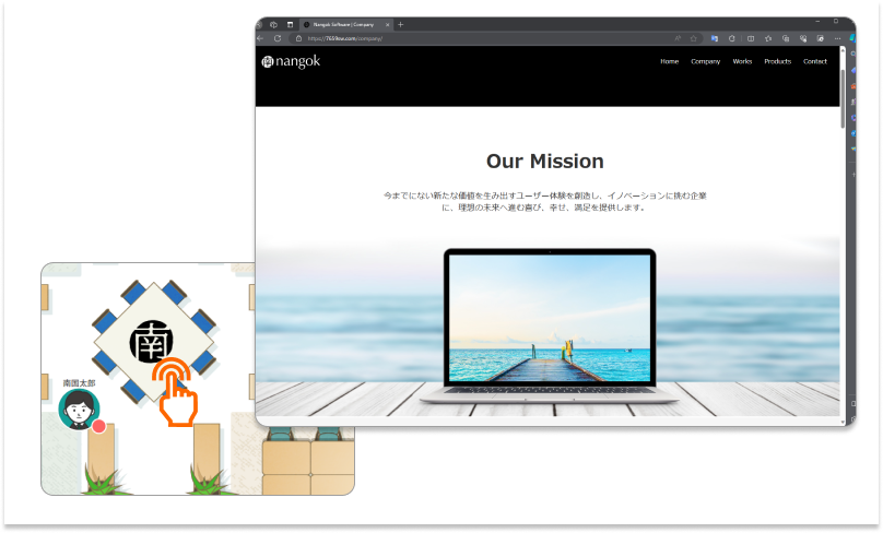 Webサイトをルーム内に配置することができます。Webサイトの閲覧はユーザーごとに操作可能です。
