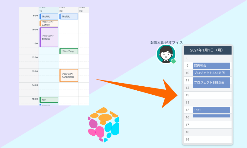 zawaroom上でOutlook予定表を確認することができます。他人の予定表も確認できます。(※Microsoft EntraIDでログインしている場合のみ)